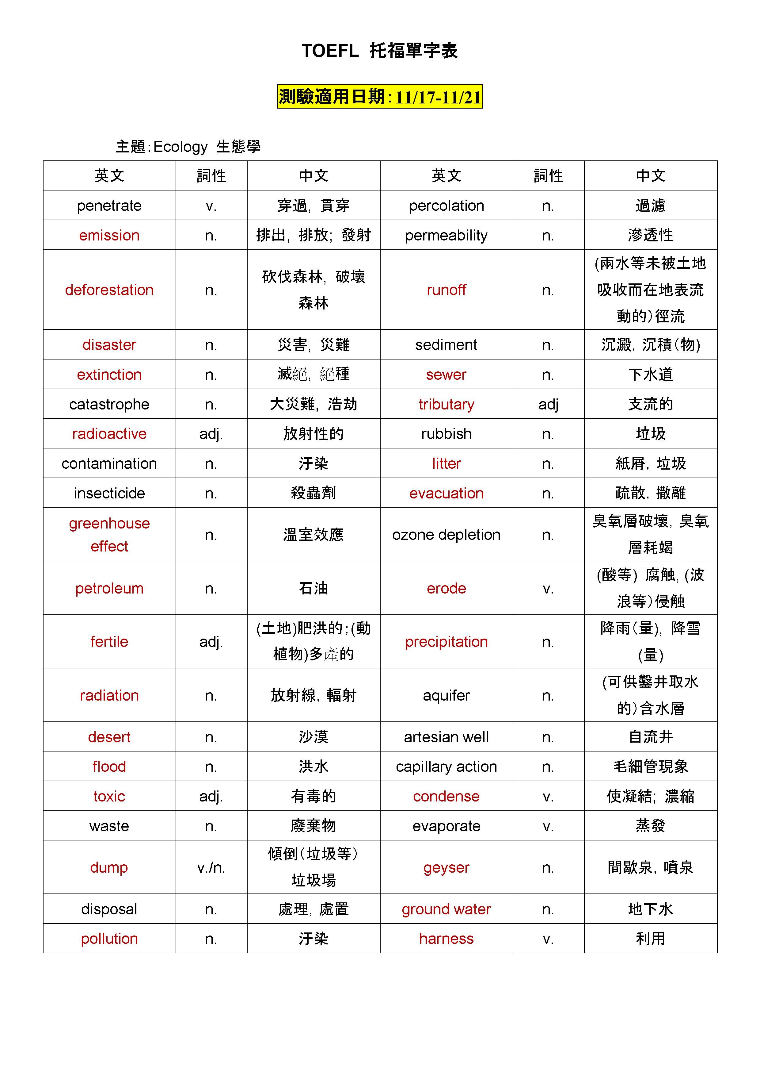 【線上托福單字詞彙測驗】第八週單字表(114/11/17-114/11/21)