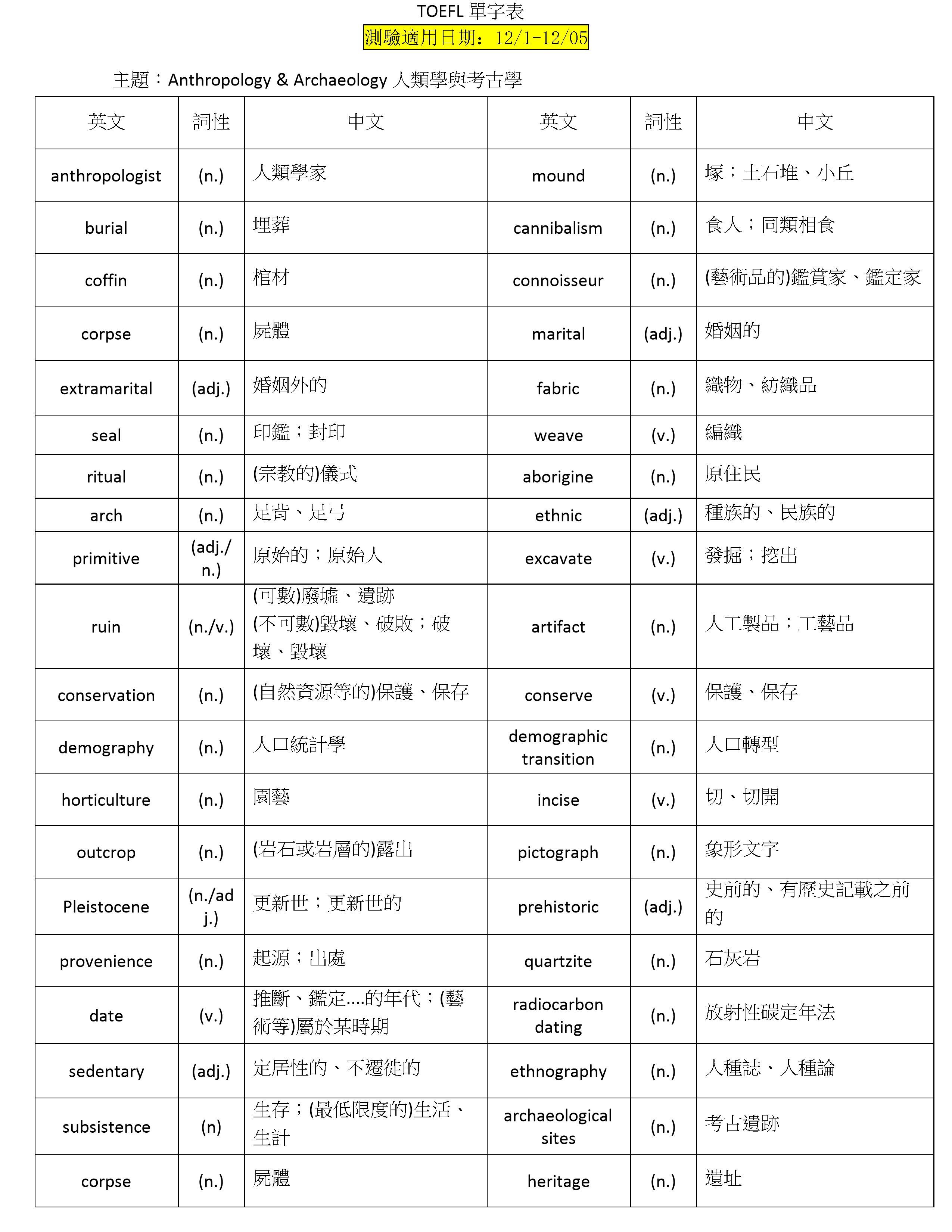 【線上托福單字詞彙測驗】第十週單字表(114/12/01-114/12/05)