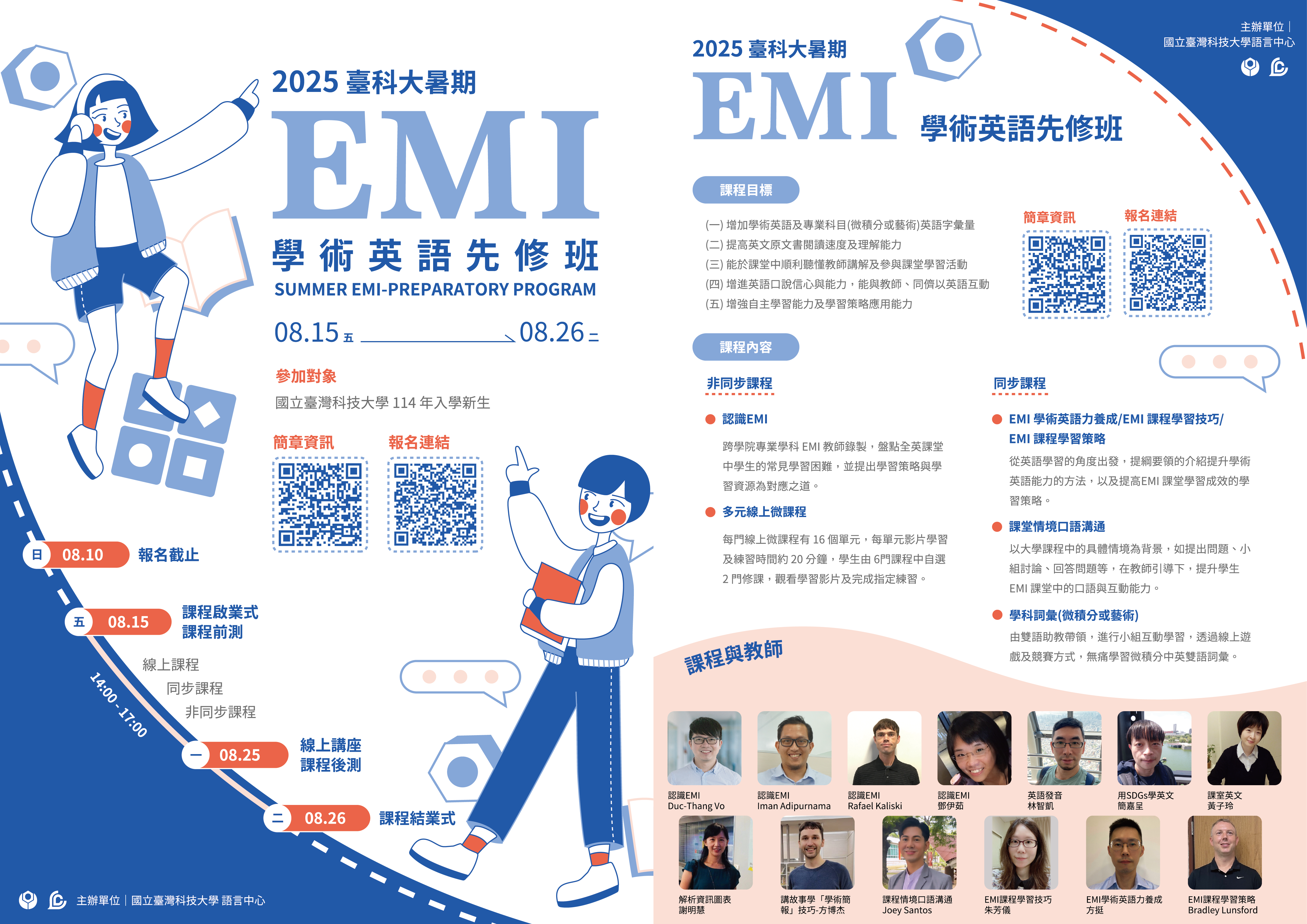 【暑期課程公告】2025暑期「EMI學術英語先修班」課程~歡迎大一新生踴躍報名