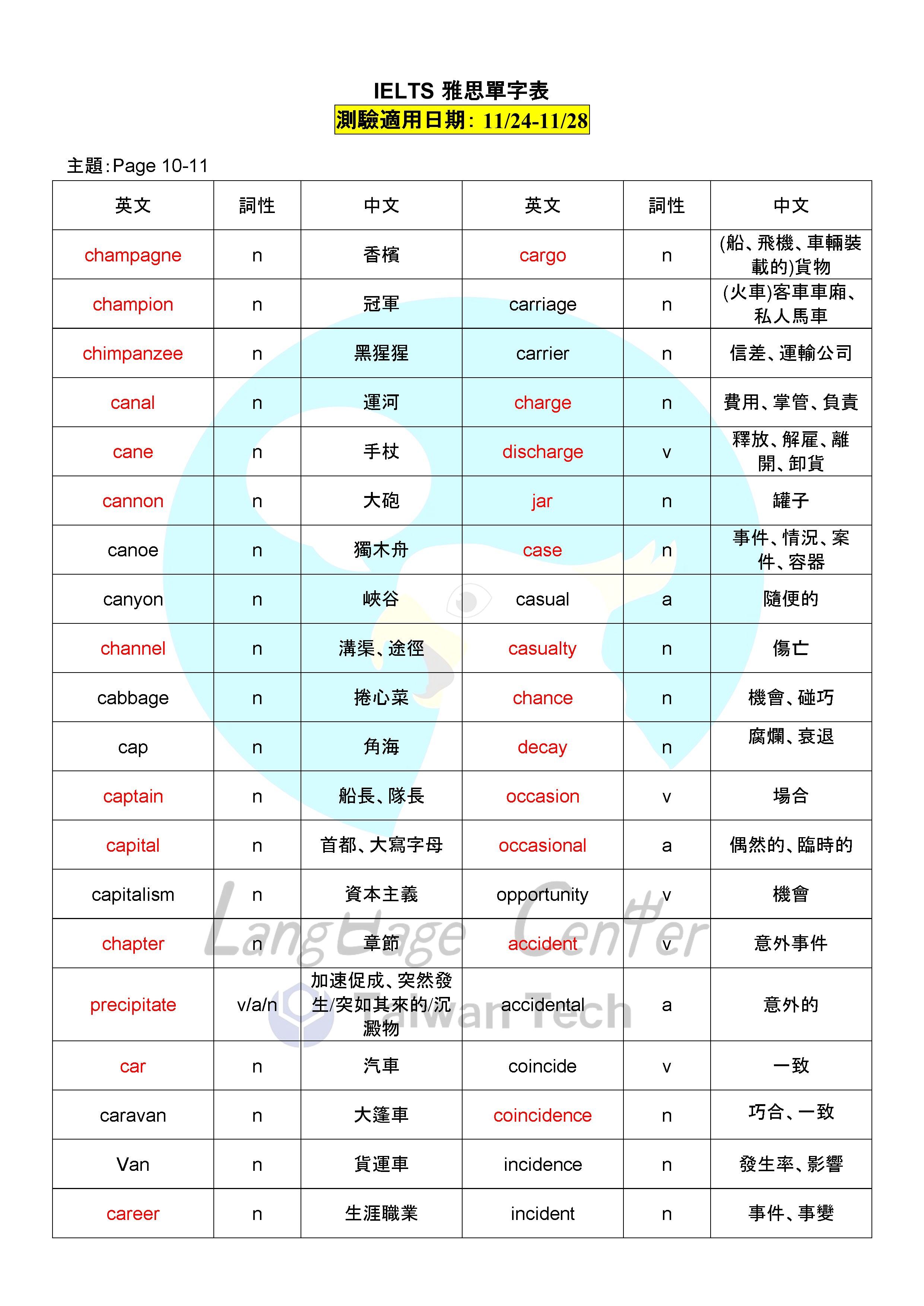 【線上雅思單字詞彙測驗】第九週單字表(114/11/24-114/11/28)