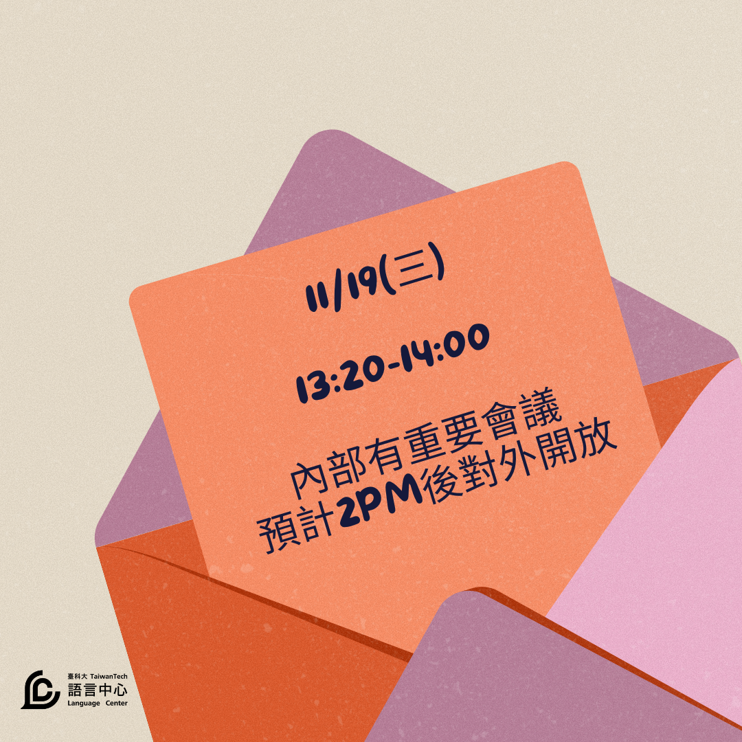 請注意!! 11/19(三)外語學習坊因有重要會議,下午1:20-2:00停止對外開放,英文小老師諮詢