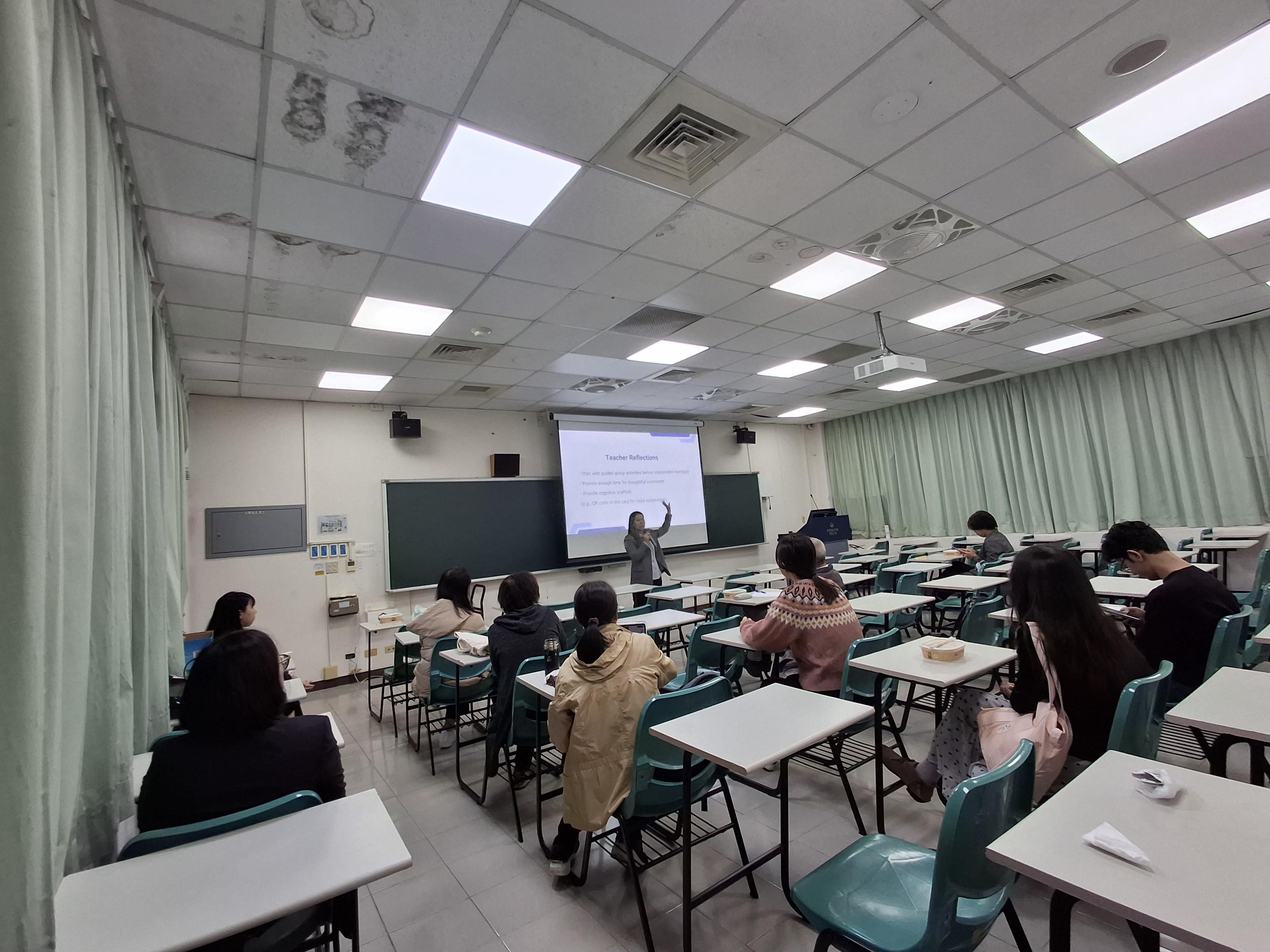 討論與交流過程中,講者特別提醒教師,在設計或導入遊戲化與獎勵元素時,需持續檢視其是否與課程目標及學習成效相呼應,避免為了「好玩」而偏離核心能力的培養。與會教師就不同課程情境如何調整授課策略、以及在課程中引導學生以英語提供深度回饋等議題踴躍提問與分享經驗,提供老師們日後在課堂中實作遊戲化同儕回饋獲得具體靈感與方向。