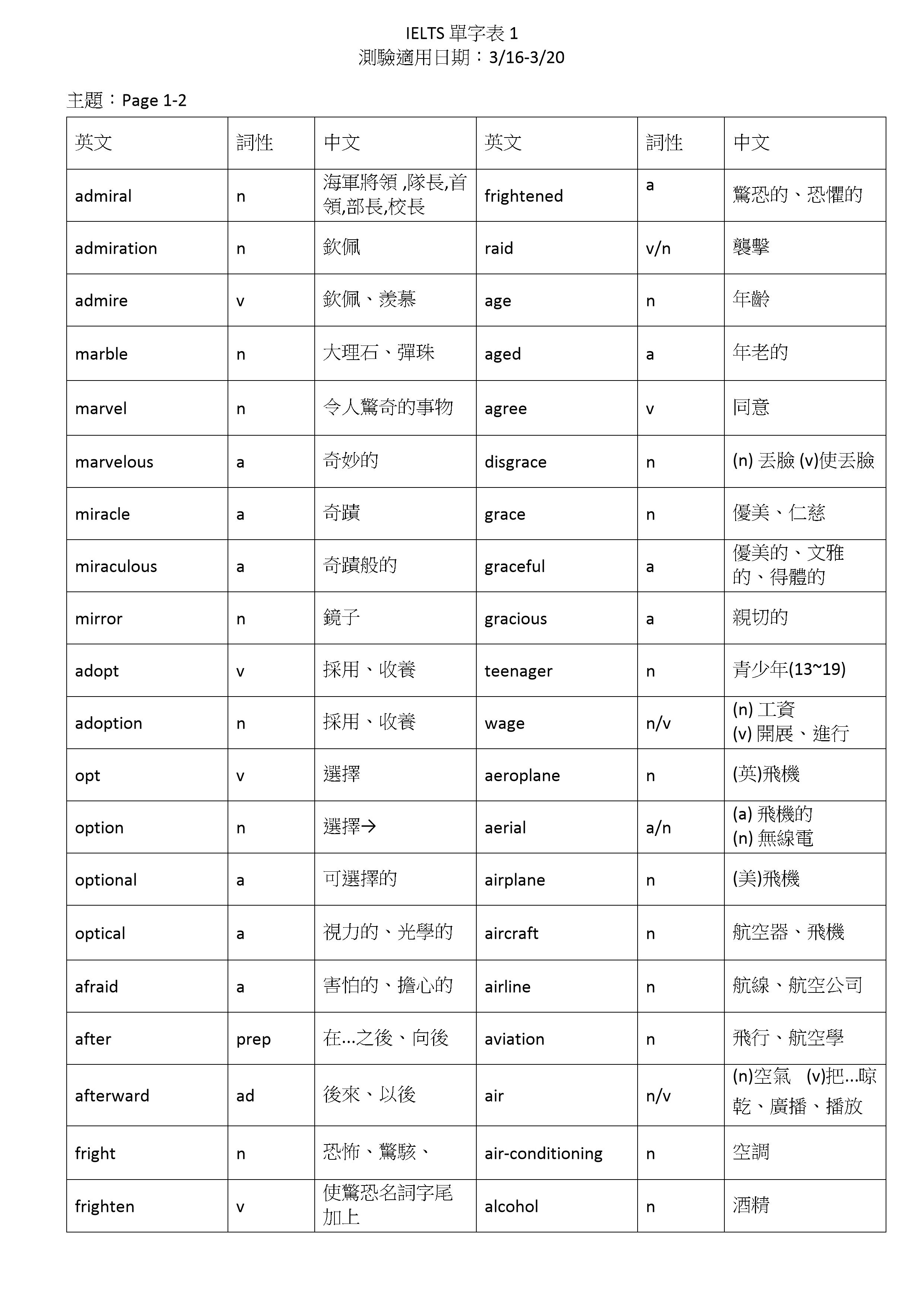 【線上雅思單字詞彙測驗】第一週單字表(115/03/16-115/03/20)