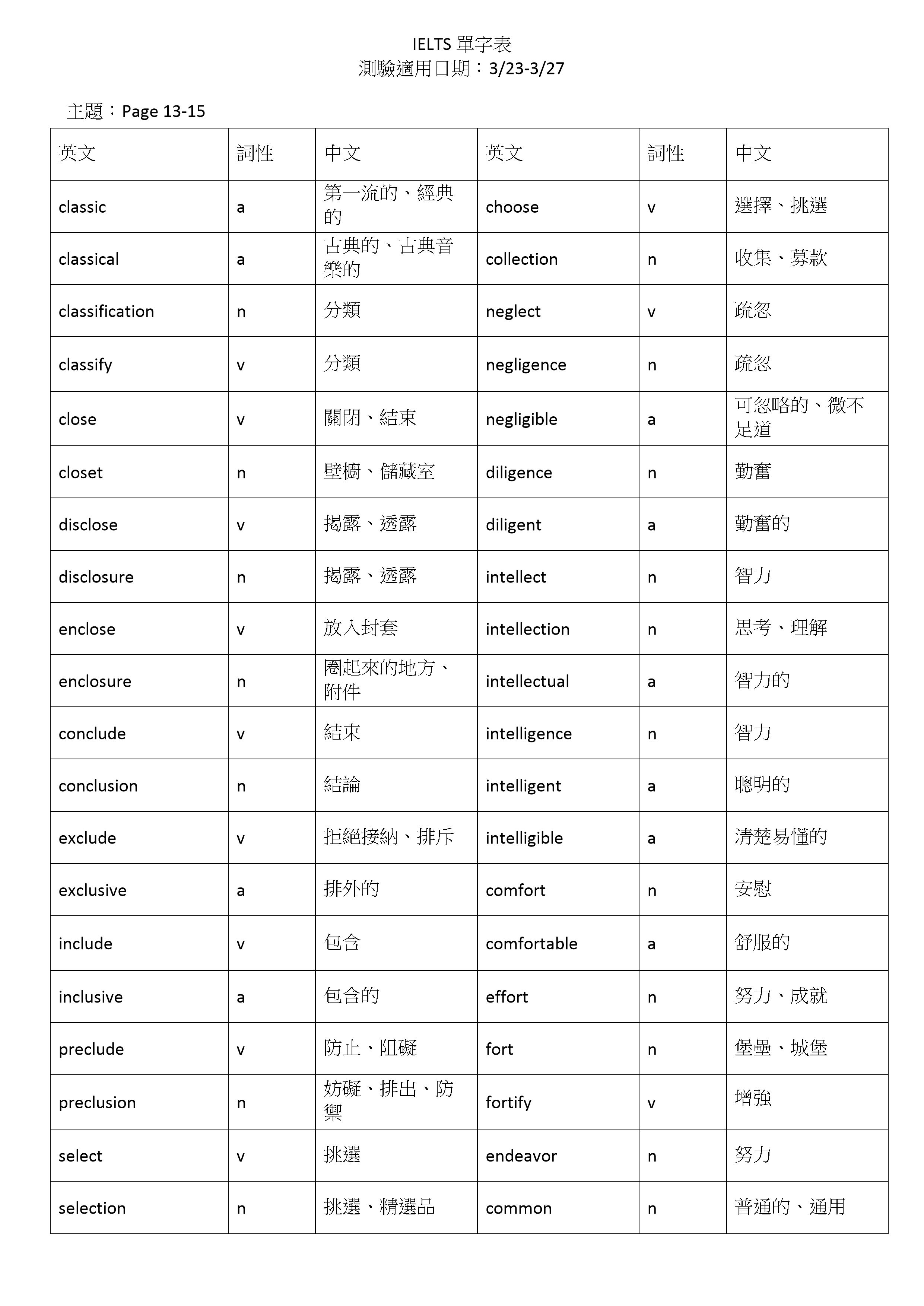 【線上雅思單字詞彙測驗】第二週單字表(115/03/23-115/03/27)
