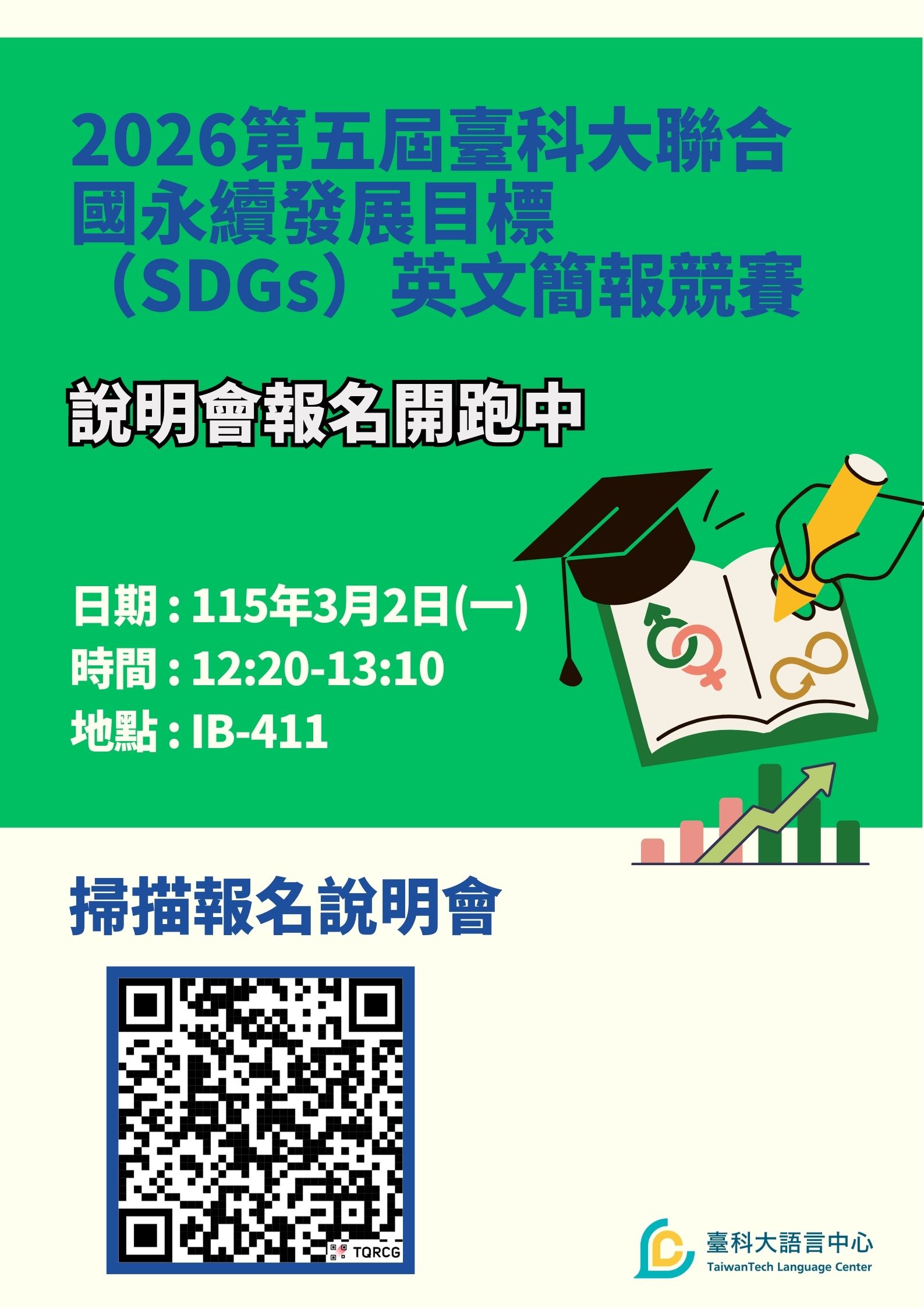 【競賽公告】2026第五屆臺科大聯合國永續發展目標(SDGs)英文簡報競賽-說明會報名中