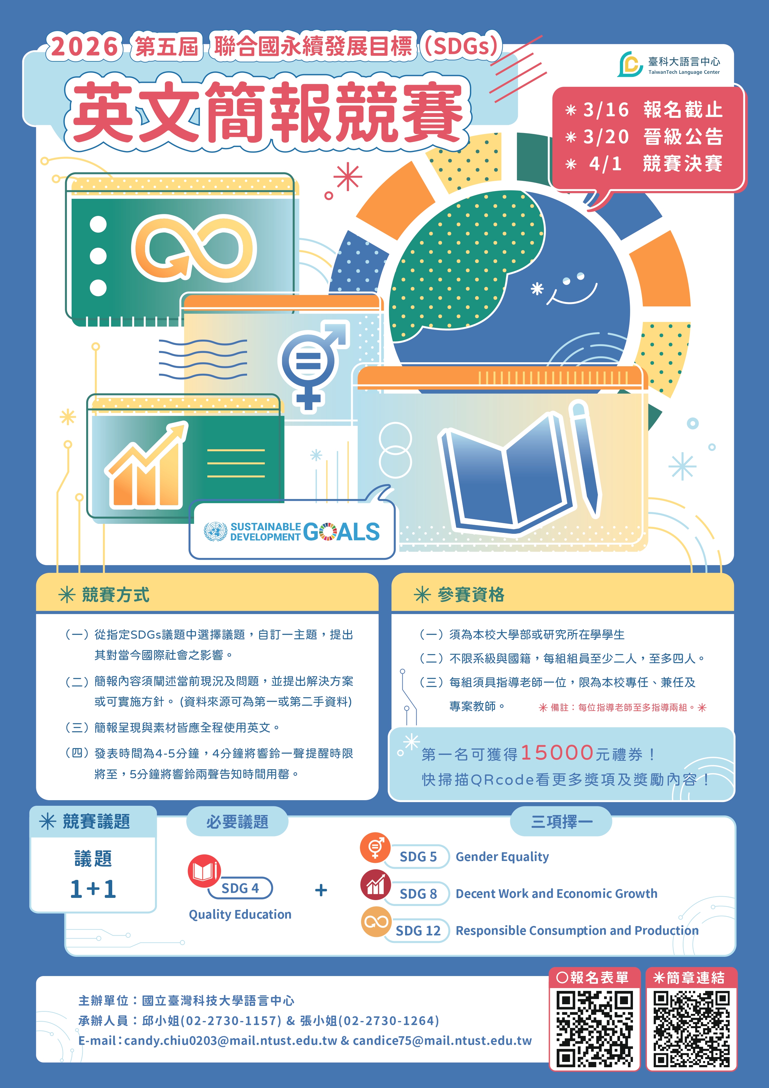 【競賽公告】2026第五屆臺科大聯合國永續發展目標(SDGs)英文簡報決賽-觀賽熱情報名中