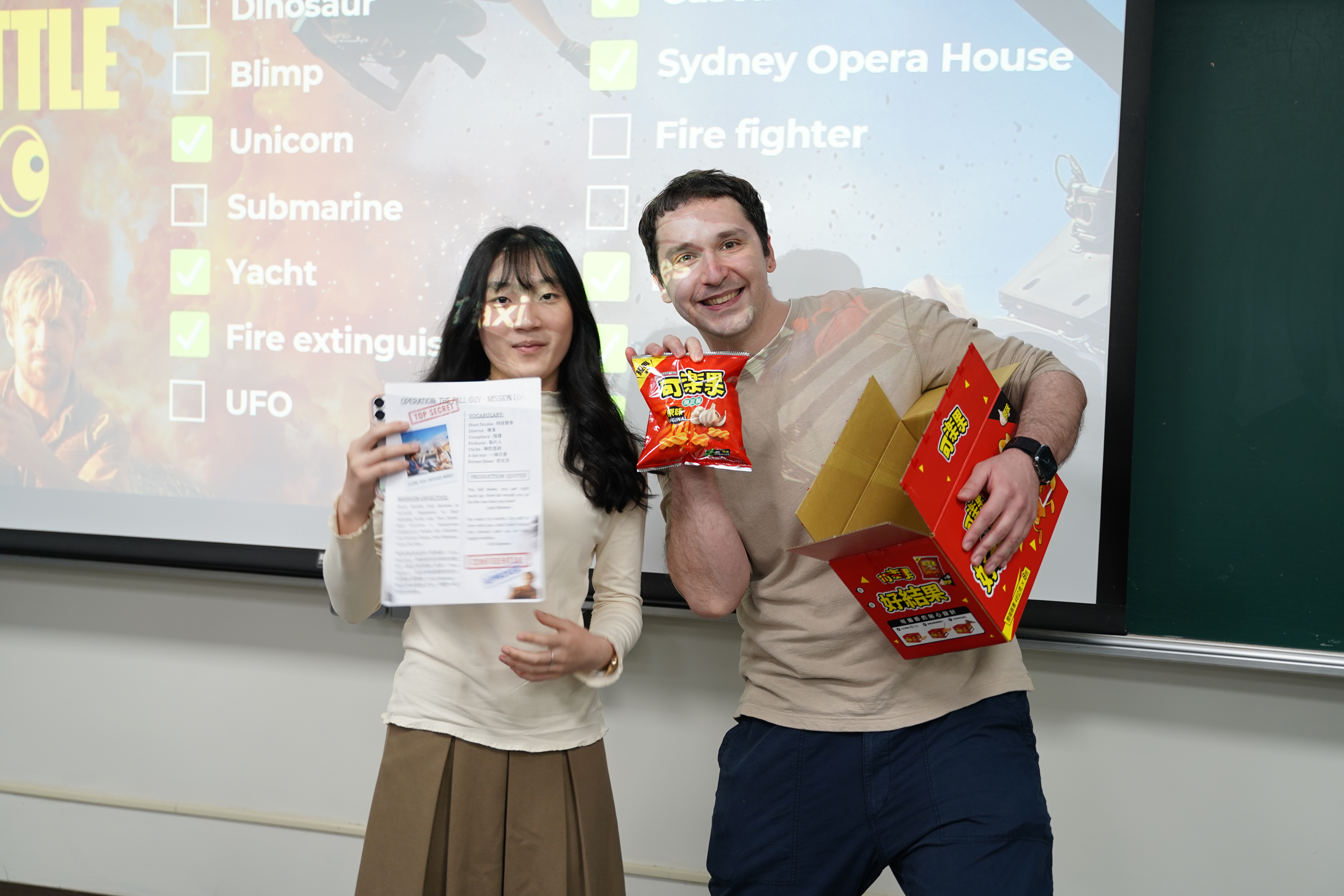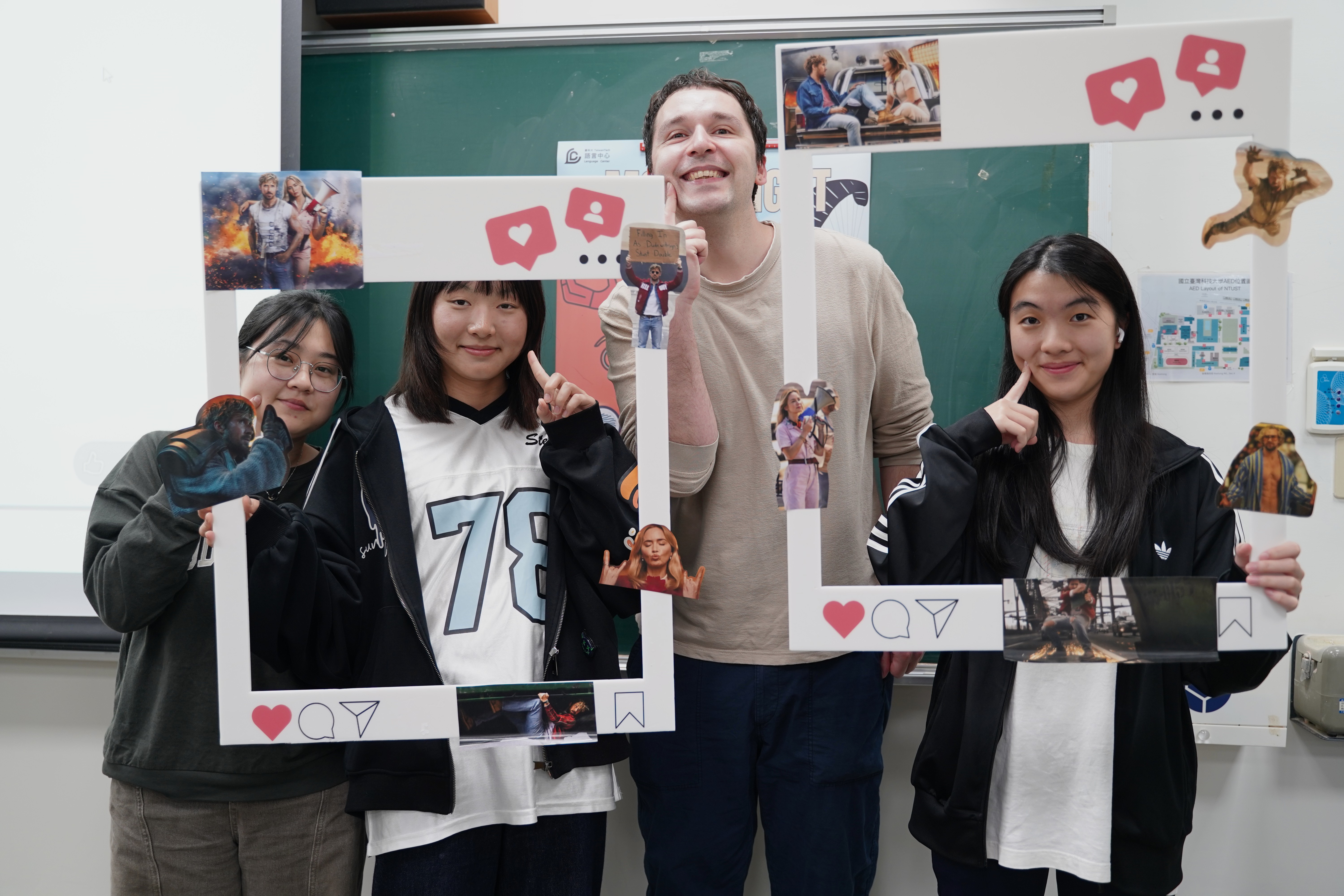 本次語言中心電影之夜播放《The Fall Guy》,活動從卡打拍照互動開始,現場氣氛相當熱絡,透過英文小老師簡單介紹,幫助同學更快進入劇情。