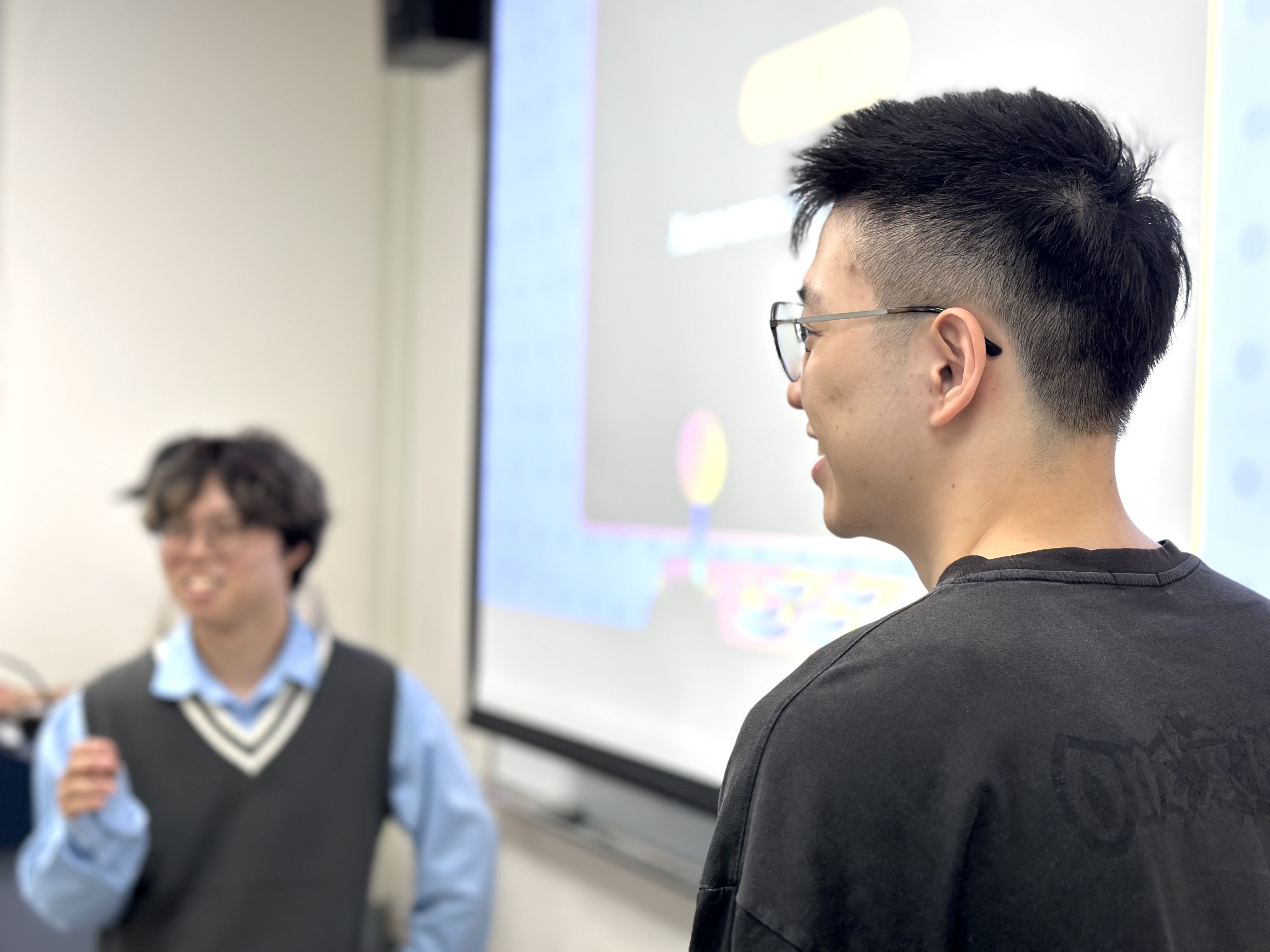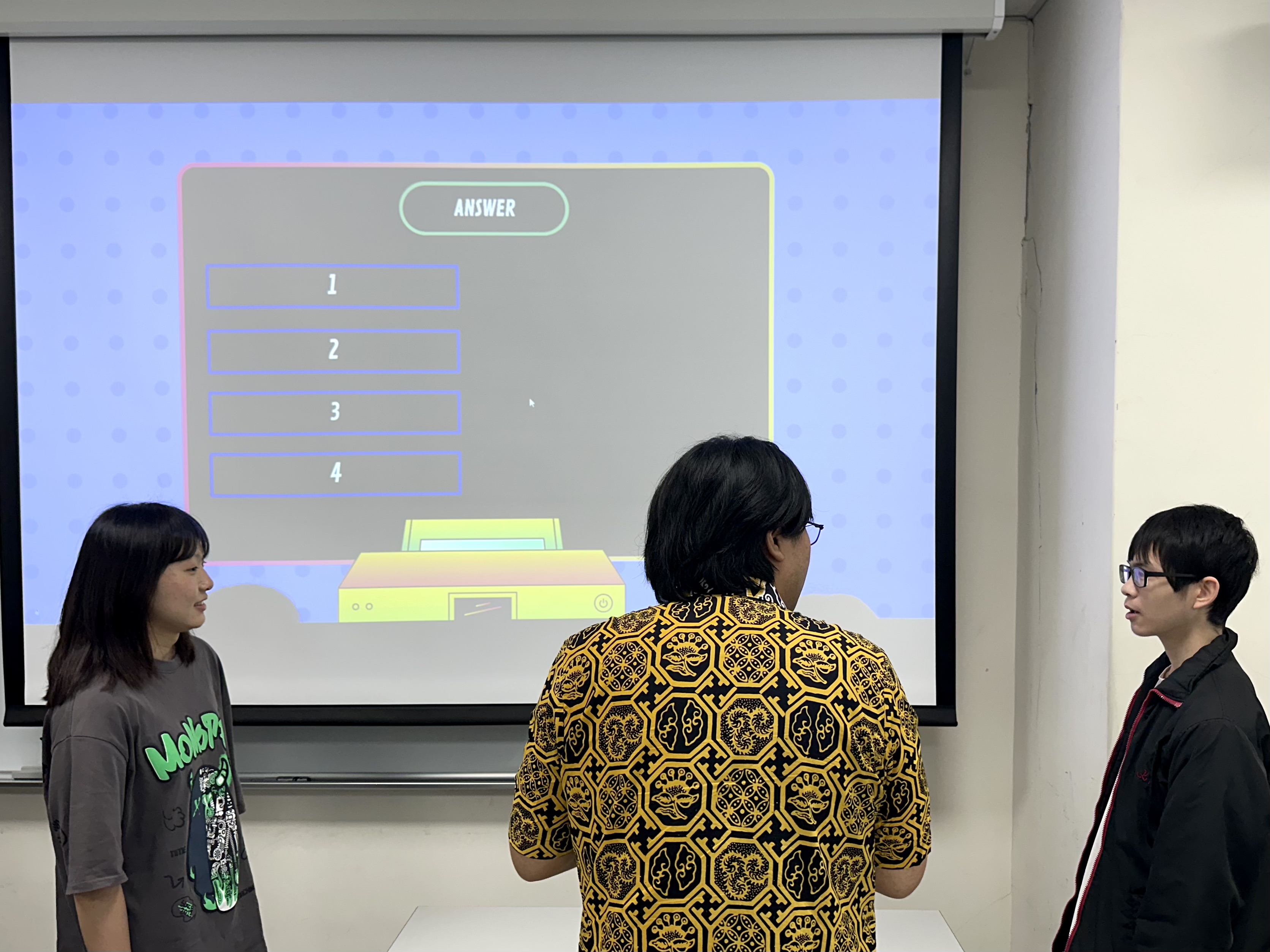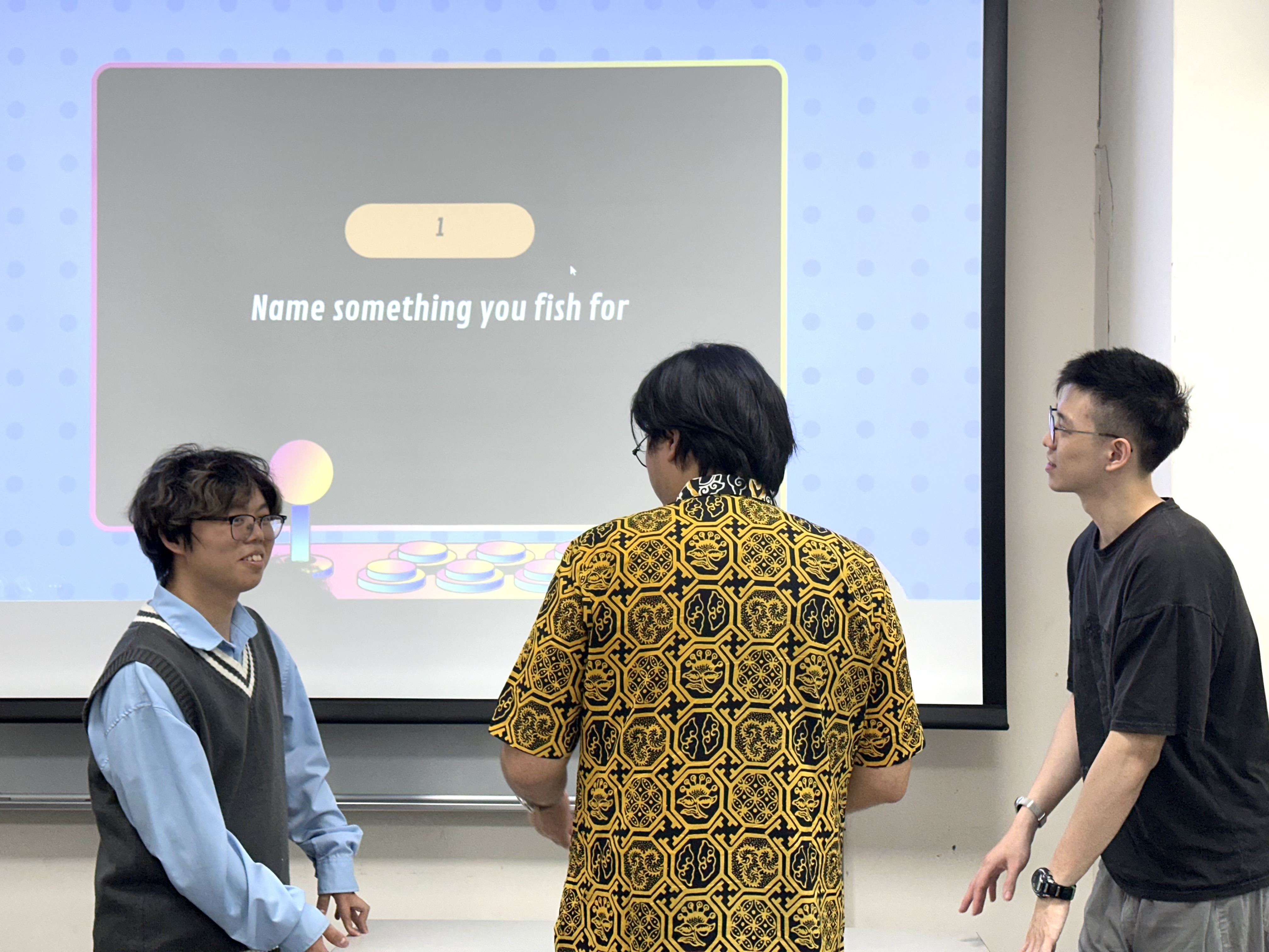本次活動由 Rino 與 Greg 兩位英文小助教主持,引進知名競賽遊戲 "Friendly Feud",透過分組對抗的形式,激發學生練習英語口說的動力。