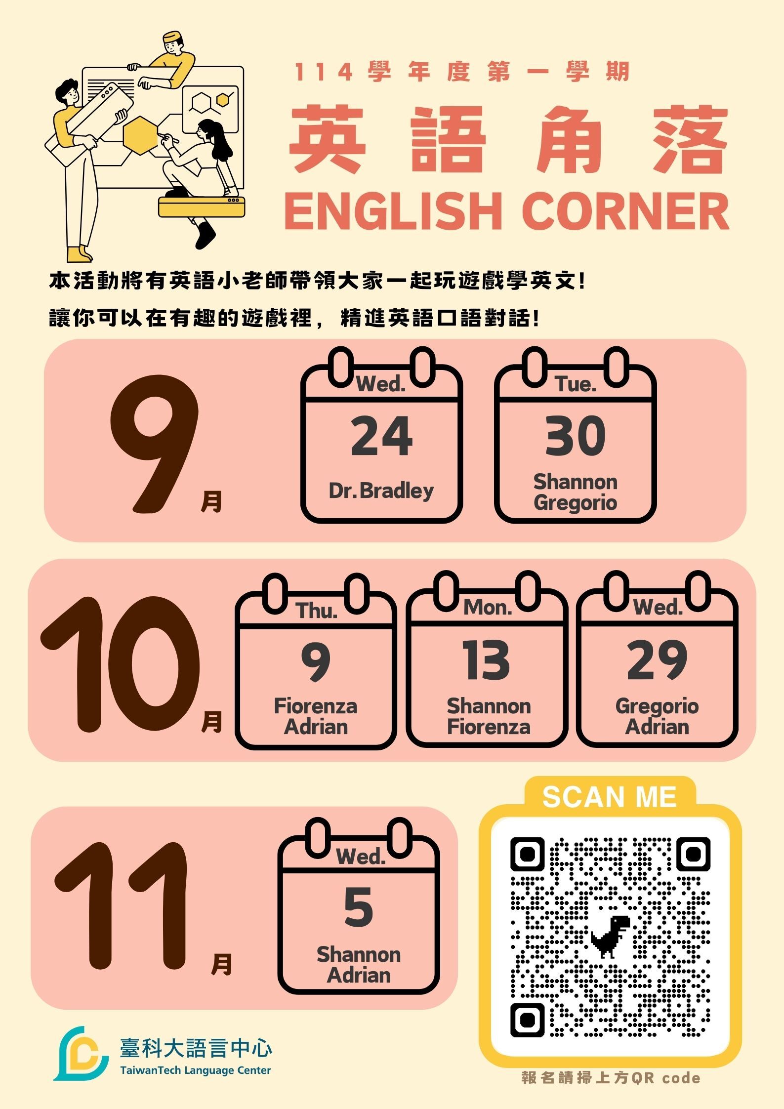 The English Tutor will conduct English learning lectures as well as activities on different topics with a total of 6 sessions held in one semester, each of which is 50 minutes long. And students who accomplish one session may receive one self-study point.